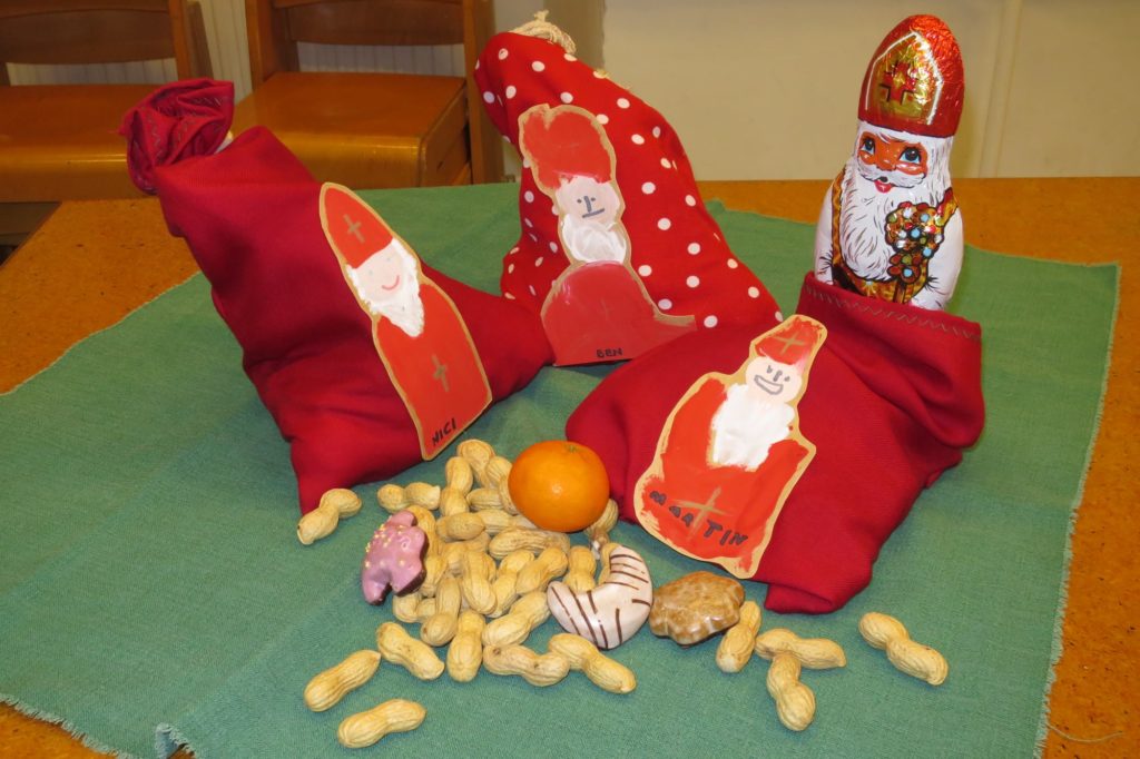 Wir haben ihm ein Gedicht aufgesagt, und er hat für jedes Kind ein Sackerl mitgebracht, mit Nüssen, Mandarinen, Lebkuchen und einem großen Schokonikolaus! Jetzt ist es gar nicht mehr lang bis Weihnachten!
